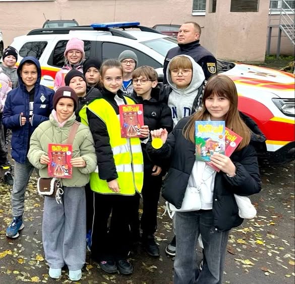 Щиро дякуємо представникам ДСНС за їхню роботу, готовність навчати молодь безпеці та за приємні подарунки дітям - комікси про відважного пса Патрона!