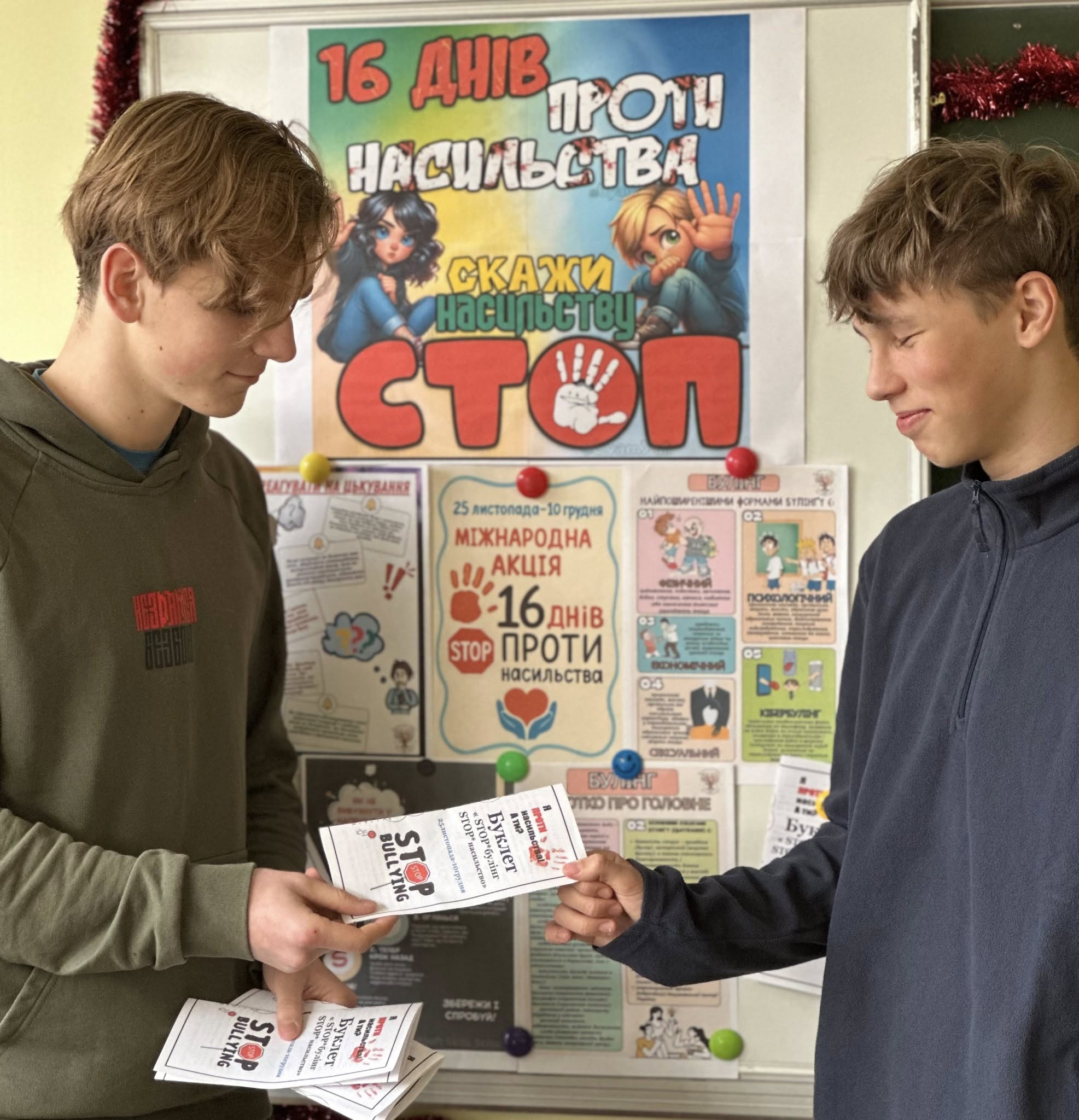 » у нашому ліцеї розпочала роботу виставка творчих робіт та проєктів учнів, яка присвячена захисту прав дітей, запобіганню булінгу та насильству. Усі бажаючі можуть висловити свою думку, доповнити символічну галерею та долучитися до акції.